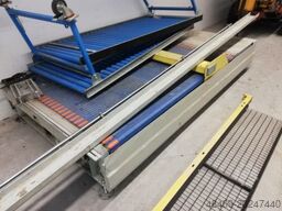 Se ofrece una cinta transportadora de rodillos para cargas pesadas usada. Componentes: 6 unidades de 4,00 m de largo y 1,00 m de ancho; 7 unidades de 1,40 m de largo y 1,00 m de ancho; 1 estación de giro de 1,00 m de ancho; 4 unidades de 3,70 m de largo y 1,80 m de ancho; 1 unidad de 2,80 m de largo y 1,80 m de ancho. Todas las piezas están en perfecto funcionamiento y equipadas con accionamientos. Muy buen estado.