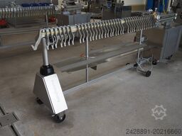 Línea completa Handtmann para embutir, porcionar, retorcer y colgar productos cárnicos, equipada con detector de metales Loma y accesorios para trabajar con carros cárnicos de 200 litros.